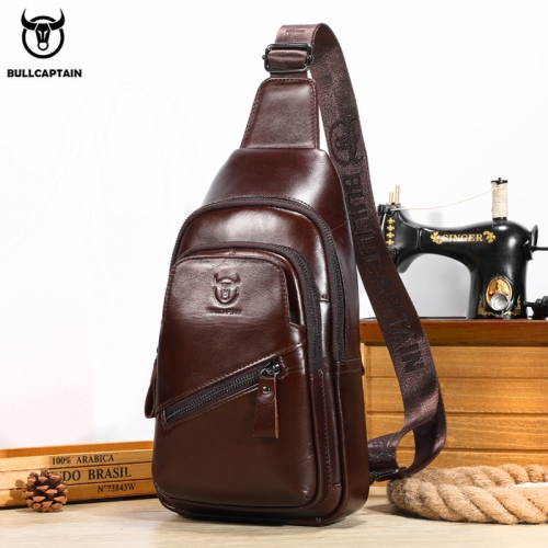 Large-capacity leather men's single-shoulder Messenger chest bag soft top layer cowhide retro double-layer card charging pocket